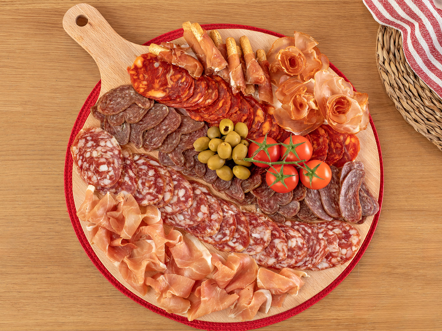 - Juega con las formas en círculos o abanicos del jamón Gran Reserva (2,65€/100g), la longaniza payés loncheada Realvalle (2,38€/2x75gr) y el lomo curado duroc (2,69€/100g).