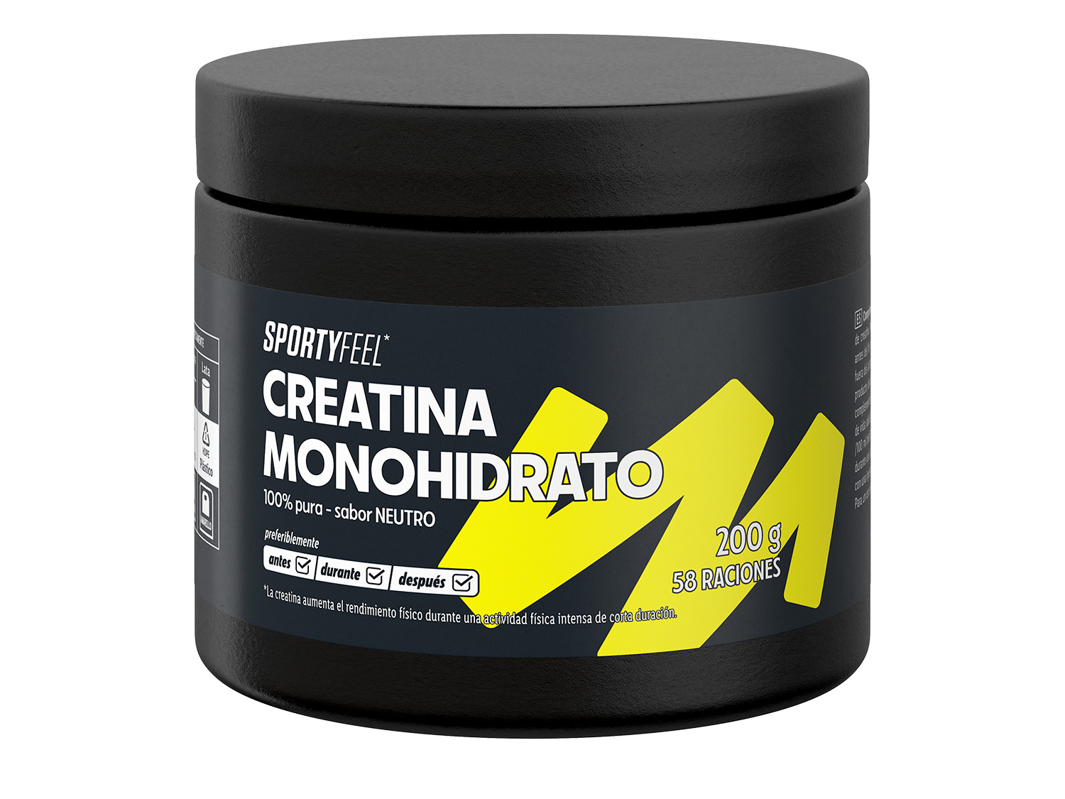 - Creatina monohidrato (9,99€): este compuesto orgánico es clave, ya que juega un rol en la generación de energía en general. Aunque el cuerpo la produce de forma natural, lo hace en cantidades muy pequeñas, por lo que para alcanzar los niveles asociados a mejoras de rendimiento suele ser necesario un aporte externo de entre 3 y 5 gramos diarios. Puede tomarse antes, después o durante el entrenamiento.